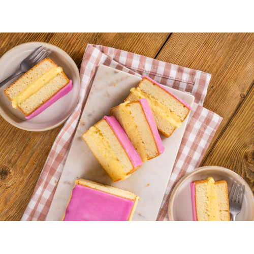 Vier elk bijzonder moment samen met de Koopmans tompoucecake: luchtig, verleidelijk lekker en direct klaar om van te genieten. Met zijn heerlijke banketbakkersroom en fleurige roze glazuurlaag is dit een verrassende twist op de vertrouwde tompouce.