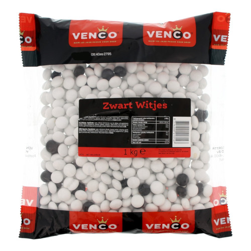 Glanzende Zwartwitjes met een fris, knapperig jasje en pittig zoute zwart-wit vulling. In een grote zak van 1 kilo.