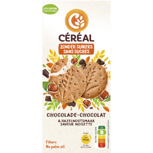 Céréal zandkoekjes met heerlijke chocolade en hazelnoot smaak. Zonder suikers.
