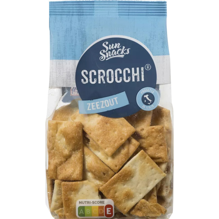 Scrocchi is het meest populaire crackertje in Italië. Scrocchi is Italiaans voor zoiets als “kraken”, wat refereert aan de knapperigheid van het toastje. Ideaal als snack of als onderleggertje met olijven of tapenade bij de maaltijd. Ook heerlijk om te dippen. Sun Snacks Scrocchi Zeezout zijn knapperige, krokante bites met een pure, hartige zeezoutsmaak.
