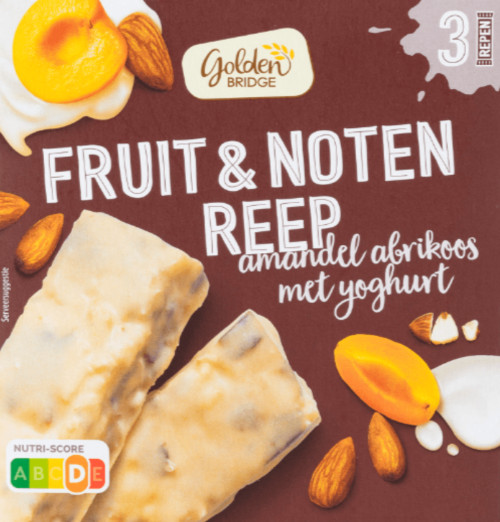 Golden Bridge fruit en noten reep met amandel en abrikoos.
