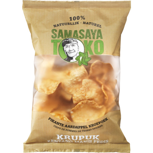 Pikante aardappel kroepoek, krokant gebakken in 100% zonnebloemolie. Lekker bij een Aziatische maaltijd of als snack.
