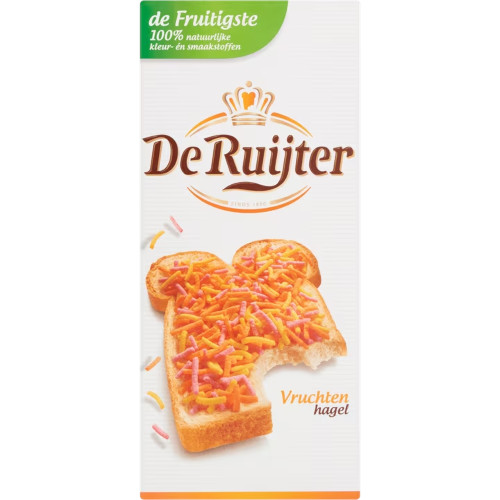 Knapperige vruchtenhagel in vrolijke kleuren.