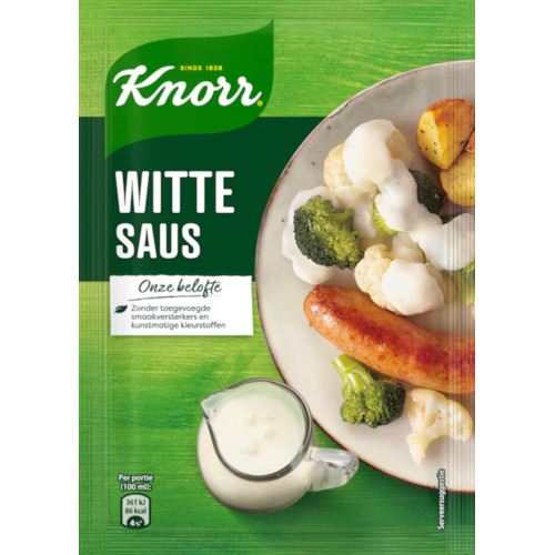 TARWEBLOEM, aardappelzetmeel, palmvet, gejodeerd zout, weiproduct (bevat MELK), magere MELKPOEDER 5,8%, glucosesiroop, mineraalzout (kalium), MELKEIWITTEN, aroma, gehydrolyseerd maïseiwit, witte wijnextract, gistextract, suiker, uienpoeder¹, maltodextrine, citroensap, zout, nootmuskaat. Kan ei, soja, selderij, mosterd bevatten. ¹op duurzame wijze geteeld.