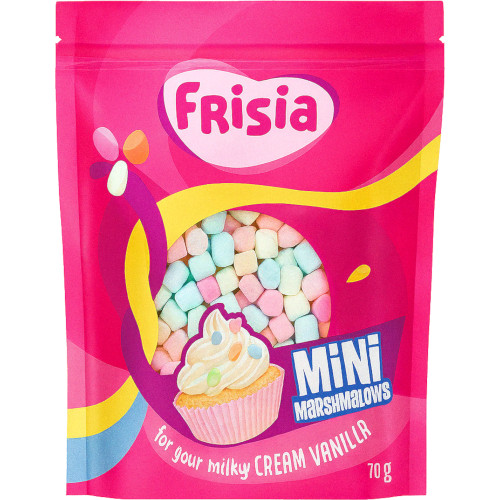 Mini cream vanilla mallowa to decorate cupcakes, desserts and pancakes. Also delicious in hot drinks.