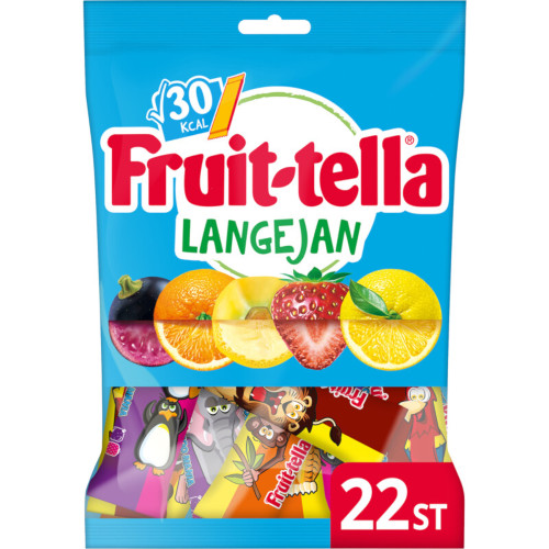 Fruittella Lange Jan Animal Family is beastly delicious. In the tasty combo flavours strawberry/blackberry, cola/lemon and orange/banana. Fruitella Lange Jan are prepared with real fruit juice.