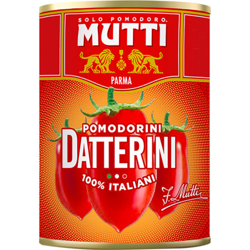 Mutti Pomodorini datterini are small, date-shaped tomatoes known for their mild flavour and fleshy texture. They are grown in the Italian sun and processed within 24 hours after harvest to preserve the taste of freshly picked tomatoes. These datterini tomatoes are 100% Italian, with no artificial additives, and are ideal for a quick sauce. They also pair very well with seafood and shellfish dishes.
